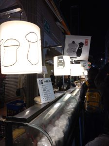 屋台の中でも目立つ行列を見せていたところが上の写真。これはエリンギのタレ焼きの屋台で、これまで見たことのないもの。こちらも相方と行列に並んで買ってみた。タレを塗った極太のエリンギを炭火で焼き、一口大に切って胡椒ベースの調味料をかけて食す。確かに食感がヘルシーな肉のようで、ふりかけた調味料にベストマッチ。これに気づいた店主は偉い。ちょっとしたアイデアで行列店を演出することが可能になるのは、ビジネスの上で大事な教訓と言えそうだ。
